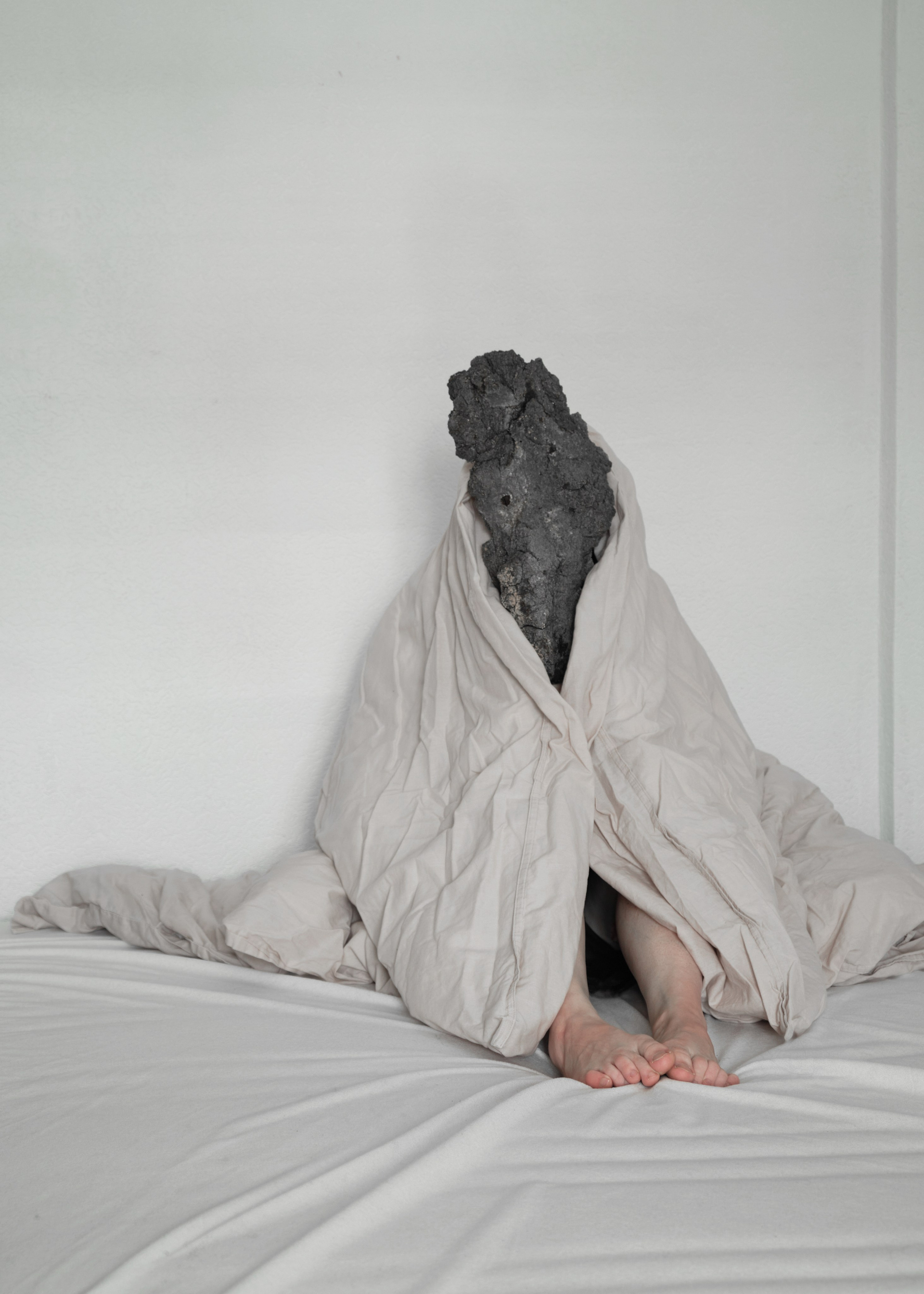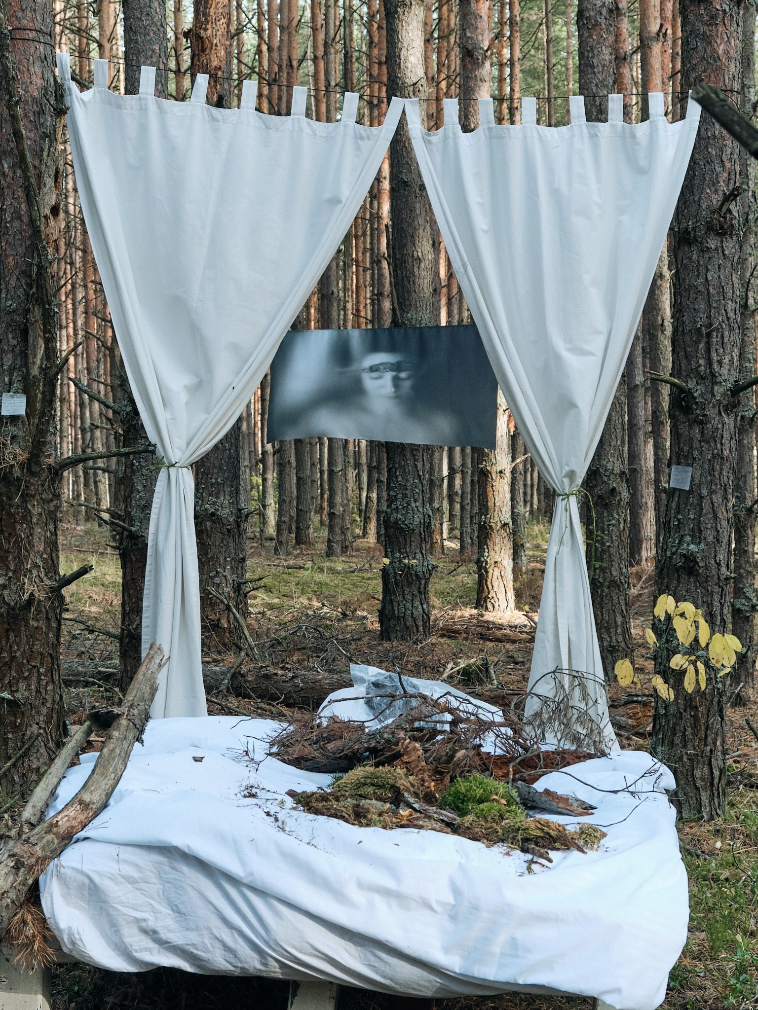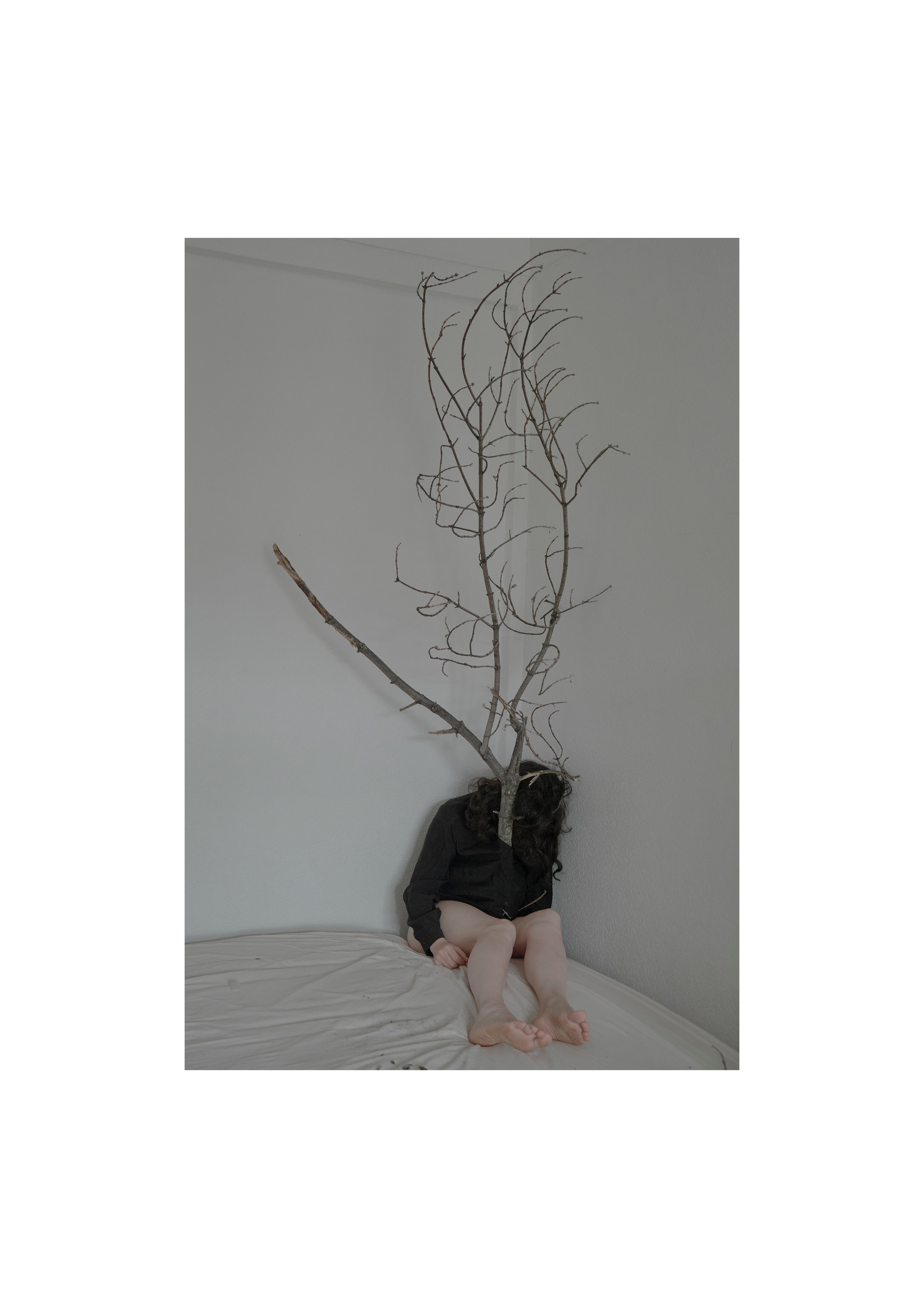 Мой проект — о переходе от мортидо к либидо, от смерти к жизни. Мортидо — это бессознательное влечение человека к разрушению или смерти, связанное с деструктивными импульсами, направленными на себя или других, и считается противоположностью либидо — влечению к жизни. В книге «Смерть, ритуал и вера» Дуглас Дэвис рассматривает феномен green burial — практику экологических захоронений, при которой тело хоронят без барьеров с землей, позволяя органике естественно разложиться и стать почвой. Мои автопортреты — это возвращение к жизни через телесность и прямой контакт с природой: кожа, земля, разложение, превращение. Этот процесс дает телу место в природной экосистеме, где всё живое включено в общий цикл распада и возрождения.»
